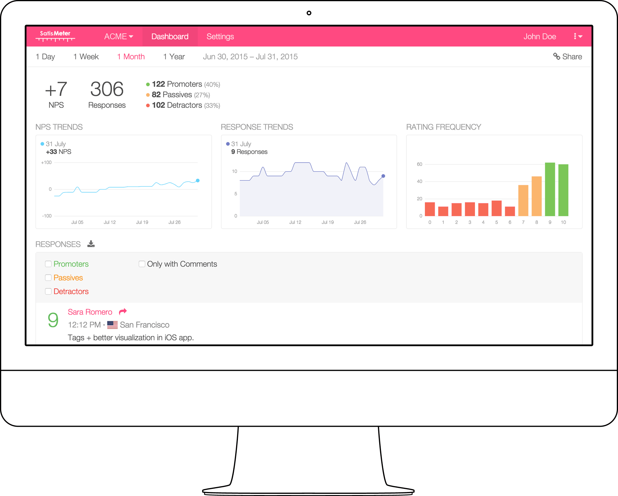 Install SatisMeter into any app or website in less than 10 minutes.